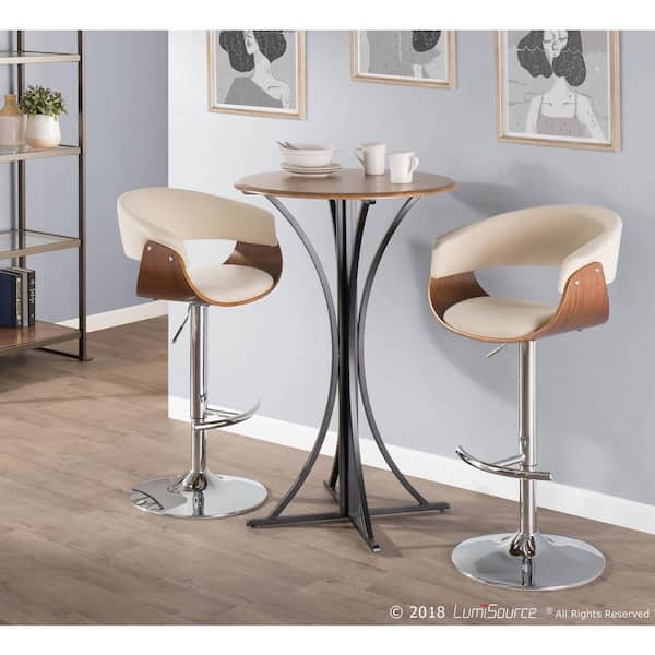 Vintage Mod Walnut and Cream Adjustable Bar Stool