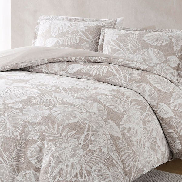 Bali Tropical Leaves Gauze Jacquard 3-Piece Neutral Cotton Blend King Duvet Cover Set