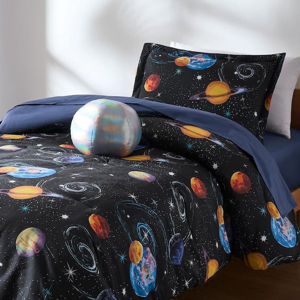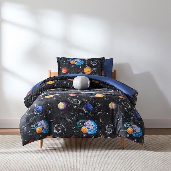 Mysterious Universe 6-Piece Black/Navy Microfiber Twin Comforter Set