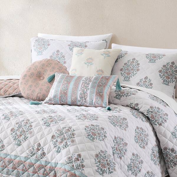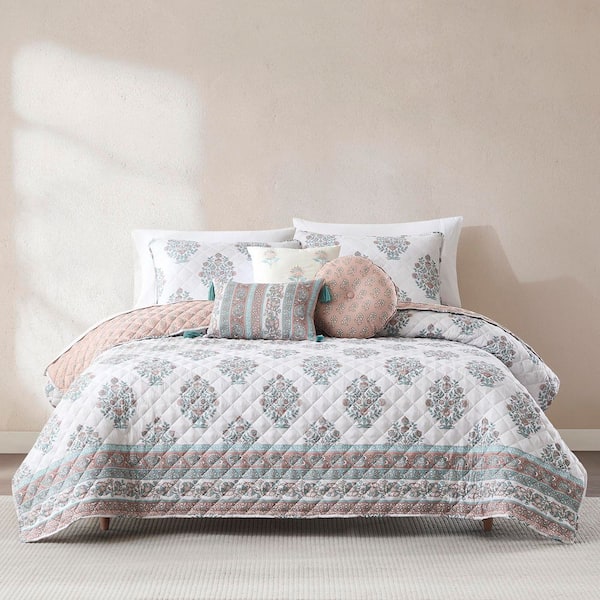 Sofia Flower Block Bouquet Reversible 6-Piece Clay Microfiber Full/Queen Quilt Set