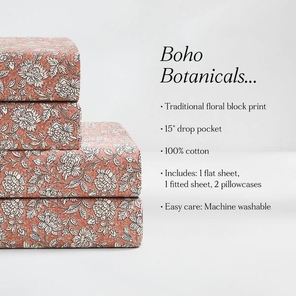 Zara Floral Block Cotton 4-Piece Set Terracotta Cottage Cotton Queen Sheet Set