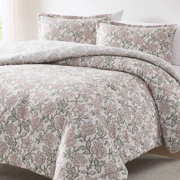 Zara Floral Block Reversible 3-Piece Misty Rose Microfiber Full/Queen Comforter Set