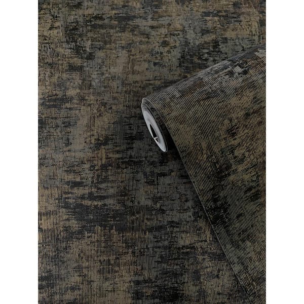 Lustre Collection Black/Gold Distressed Plaster Metallic Finish Paper on Non-woven Non-pasted Wallpaper Roll