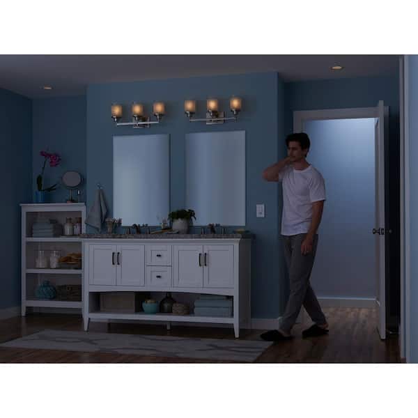 • Motion sensor sets lights to set dimmed level/auto off when exit