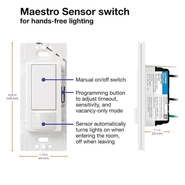 Maestro Motion Sensor Switch with Wallplate, 2 Amp/Single-Pole, White (MS-O2S-3PK-WHW) (3-Pack)