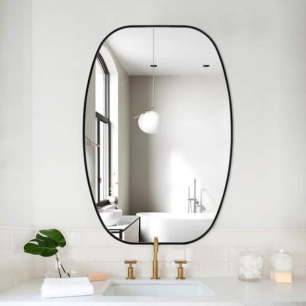20 in. W x 30 in. H Modern Oval Aluminum Frame Black Wall Mirror (Screws Included)