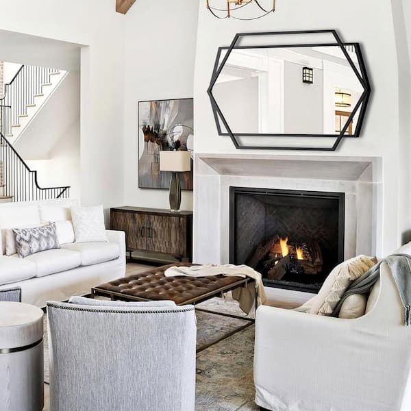 30 in. W x 40 in. H Hexagonal Rectangular Black Metal Frame Decorative Mirror Bathroom Mirror Wall Mirror