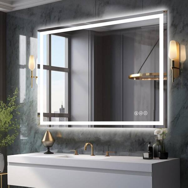 36 in. W x 48 in. H Frameless Rectangular Anti-Fog LED Adjustable Front And Backlit Bathroom Vanity Mirror Wall Mirror