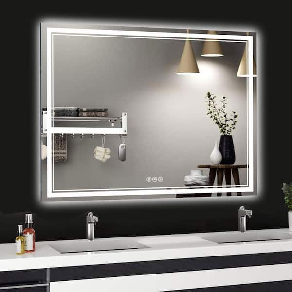 36 in. W x 48 in. H Rectangular Frameless Anti-Fog Front And Backlit LED Wall Mirror Bathroom Vanity Mirror