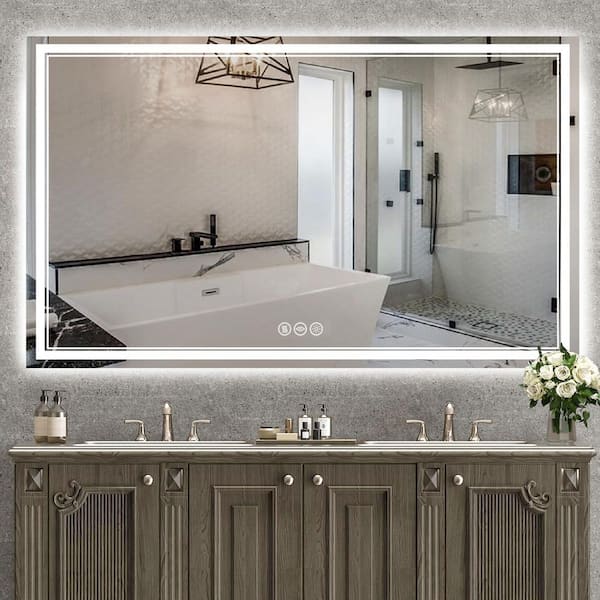 36 in. W x 60 in. H Rectangular Frameless Anti-Fog Front And Backlit LED Wall Mirror Bathroom Vanity Mirror