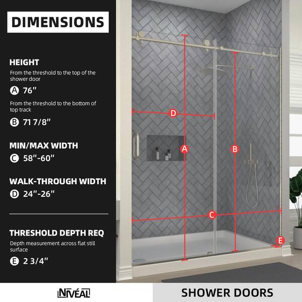 Luxe 60 in. W x 76 in. H Sliding Semi-Frameless Shower Door in Brushed Nickel Finish with Clear Glass