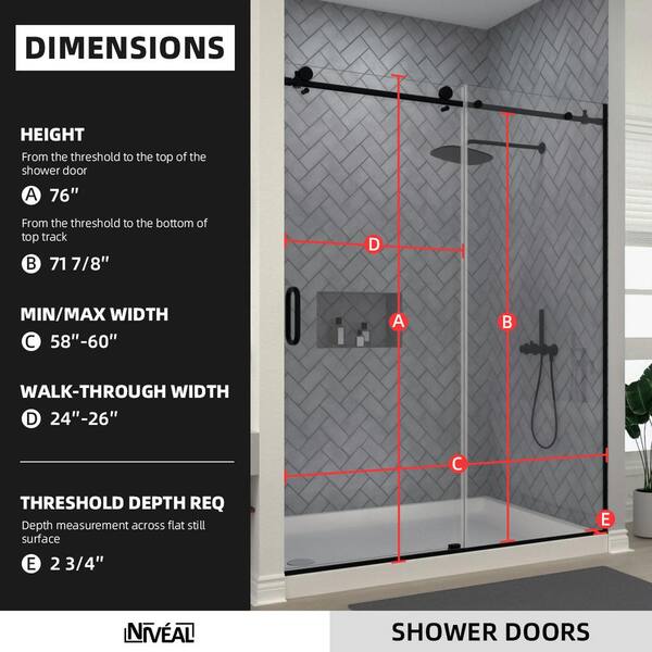 Luxe 60 in. W x 76 in. H Sliding Semi-Frameless Shower Door in Matte Black Finish with Clear Glass