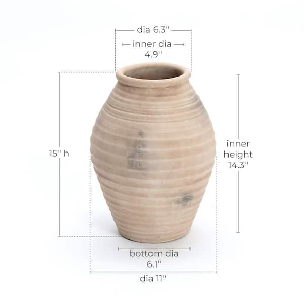 13.2 in. Rustic Brown Ribbed Terracotta Urn Vase
