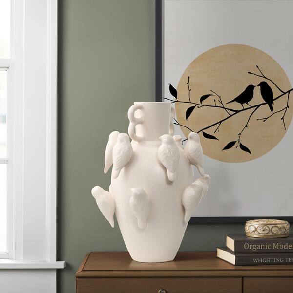 14.4 Classic White Ceramic Modern Birds Round Vase