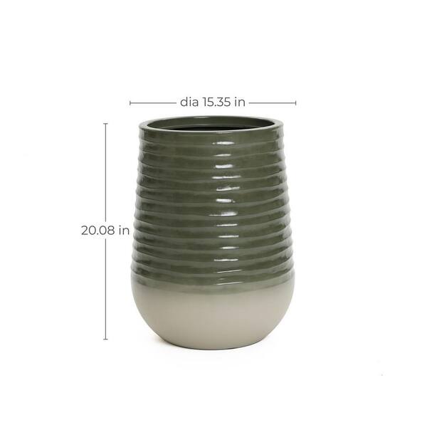 15.35 in W x 20.08 in. H Emerald Ribbed Top with Ivory Bottom 20 in. Tall Resin Round Planter