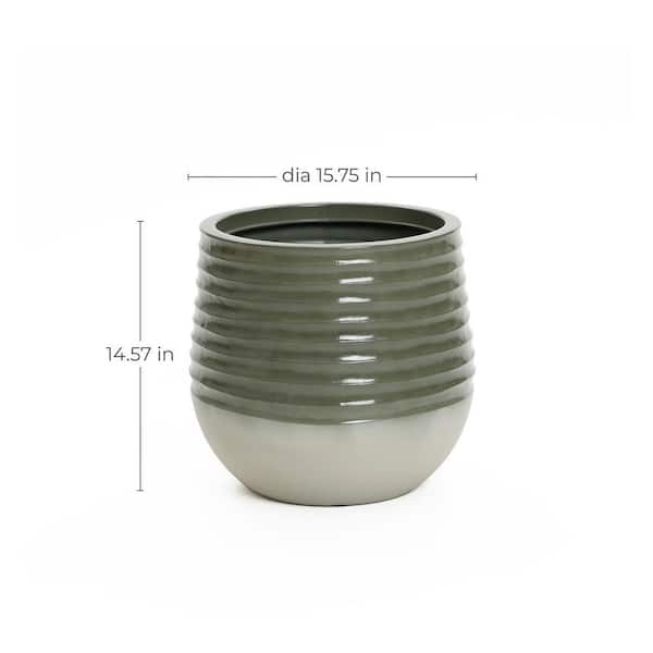 15.75 in W x 14.57 in. H Emerald Ribbed Top with Ivory Bottom 14.6 in. Tall Resin Round Decorative Pots Planter