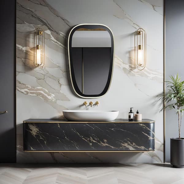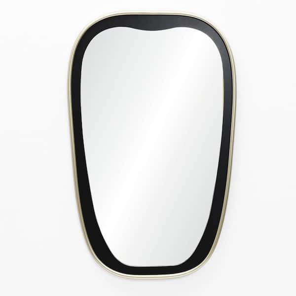 18 in. W x 30 in. H Rounded Black with Gold Iron Metal Frame Wall Mirror