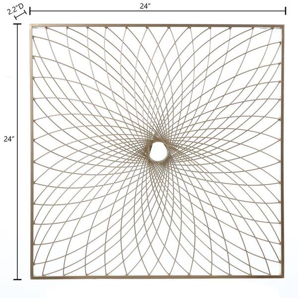 24 in. Metal Gold Finish Starburst Square Wall Dcor