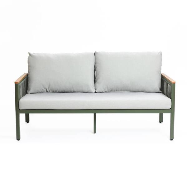 28.9 in. Green and Brown Outdoor Rectangle Wood Coffee Table Set with Loveseat and Cushions
