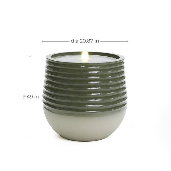 Emerald Ribbed Top with Ivory Bottom 19.5 in. Tall Resin Cascade Fountain with Lights