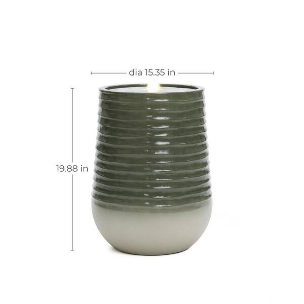 Emerald Ribbed Top with Ivory Bottom 19.88 in. Tall Resin Cascade Fountain with Lights