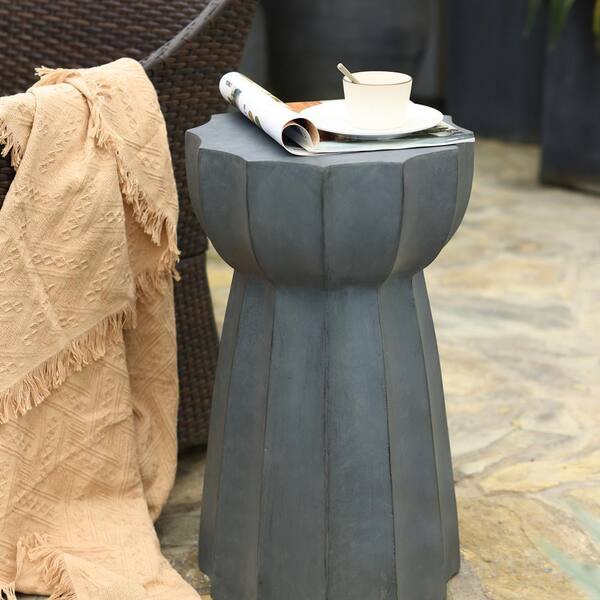 Gray Cement Indoor Outdoor Round Composite Outdoor Side Table