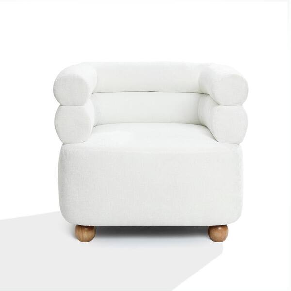 Modern Ivory Upholstered Barrel Occasional Chair with Wood Ball Legs