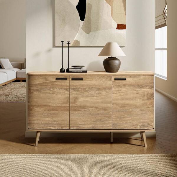 Natural Oak 30.91 in. H x 53.31 in. W Manufactured Wood 3-Door Buffet Cabinet