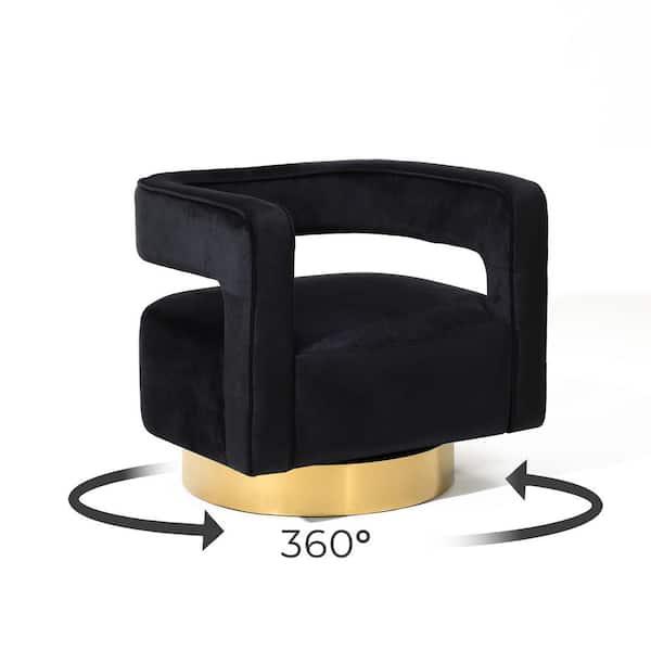Upholstered Black Velvet Open Back Club Arm Chair with Gold Base