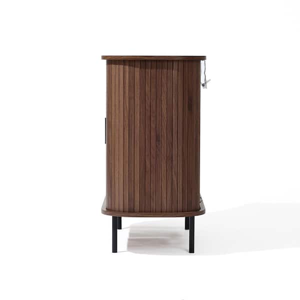 Walnut 29.5 in. Mid-Century Modern 2-Door Accent Storage Cabinet with Slatted Sliding Doors