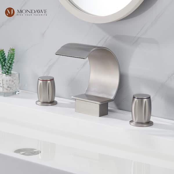 Luxury C Arc Waterfall Spout 2-Handle 8 in. Widespread Bathroom Sink Faucet With Pop-up Drain in Brushed Nickel
