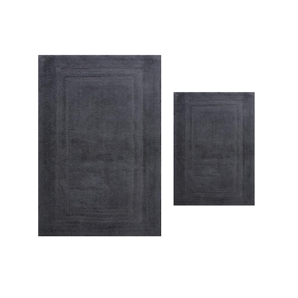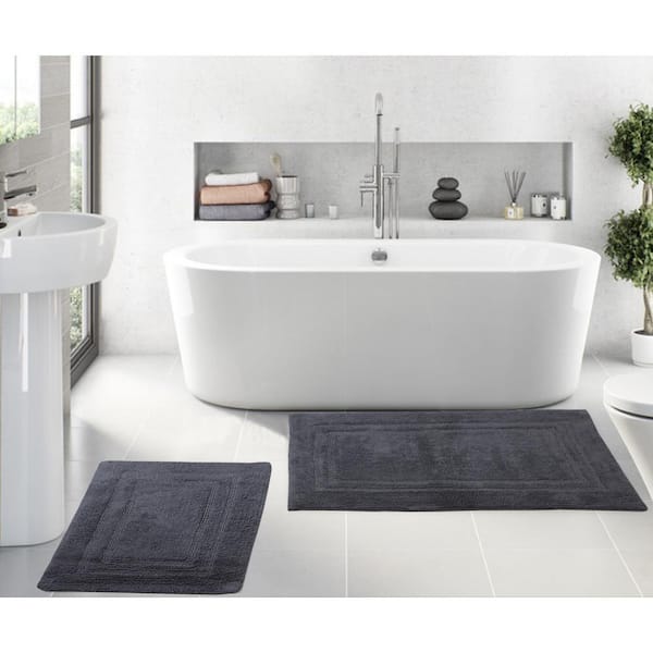 Luxury Collection 100% Cotton Reversible Bath Rug Set, 2-Piece Set(S+L), Gray