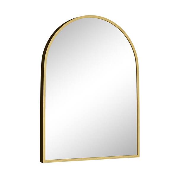 Luxury Quality Gold 24 in. W x 32 in. H Elegant Scalloped Aluminum Alloy Framed Arched Mirror