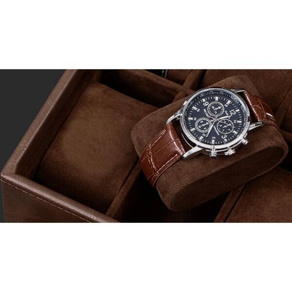 Luxury Watch Box for Men, Faux Leather Organizer with Drawer, Real Glass Top, Brown-13 in. x 7.48 in. x 5.12 in.
