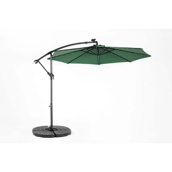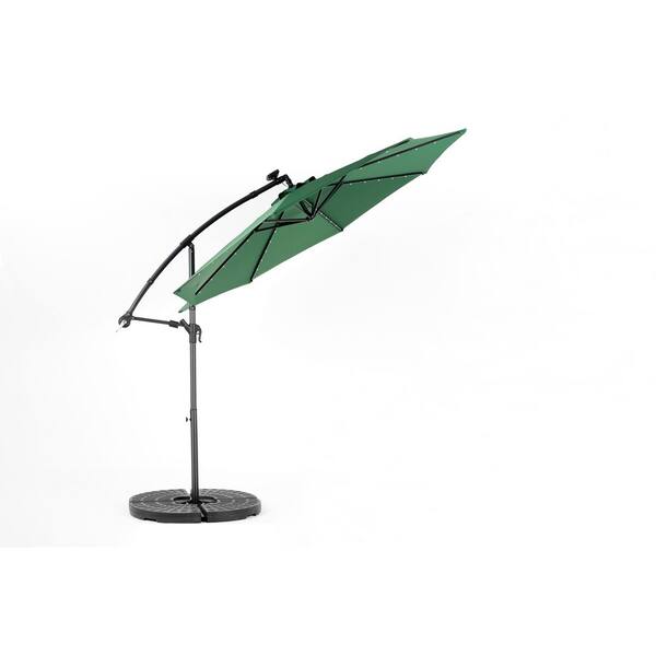 10 ft. Solar LED Offset Hanging Market Patio Umbrella in Dark Green