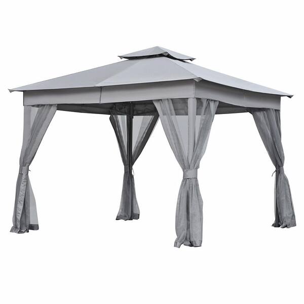 10 ft. x 10 ft. Grey Polyester and Steel Outdoor Patio Gazebo Tent Canopy with Double Roofs Mosquito Netting