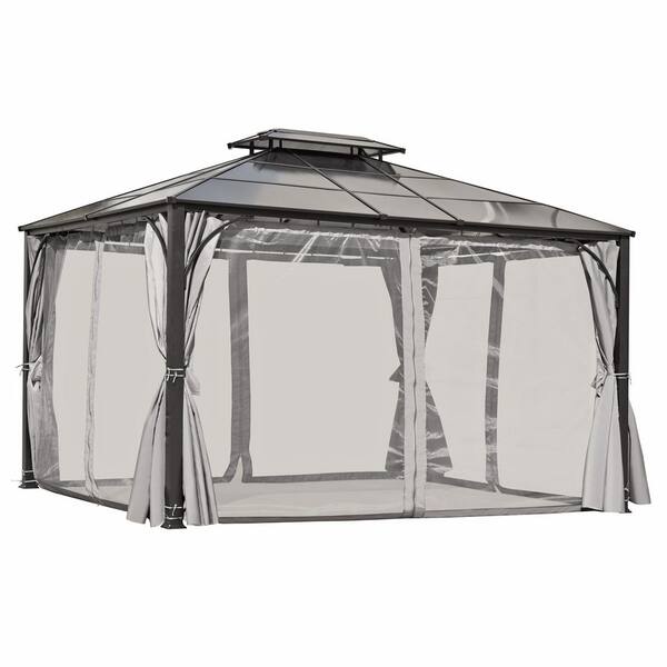 10 ft. x 12 ft. Outdoor Grey Hardtop Gazebo with Heavy Duty Double Roof and Double-Layer Mosquito Netting for Patio
