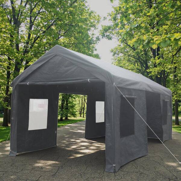 10 ft. x 20 ft. Outdoor Grey Metal Heavy Duty Canopy Carport Gazebo Party Tent Portable Garage for Camping and Car
