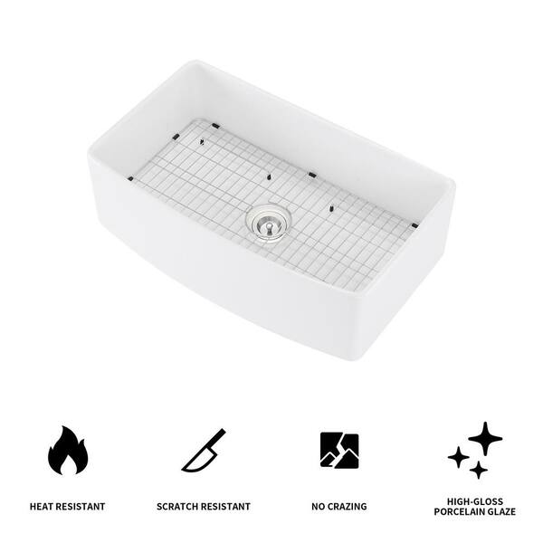 16-Gauge Fireclay 30 in. Farmhouse Sink Arch Edge Apron Front Kitchen Bar Sink Single Bowl in White