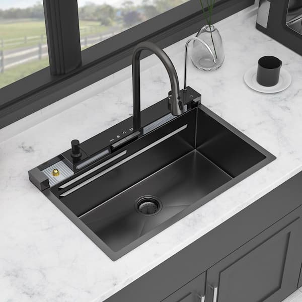 16 Gauge Gunmetal Black Stainless Steel 30 in. Undermount Bar Sink with Faucet