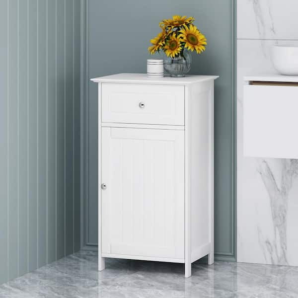 17 in. W x 13.5 in. D x 30.25 in. H White Linen Cabinet with Door and Drawer for Bathroom