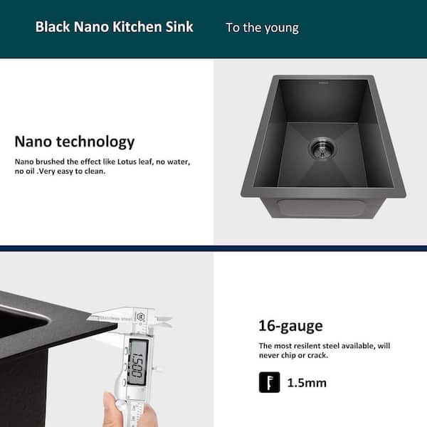 17 in. x 19 in. Undermount Stainless Steel Kitchen Sink with 16 Gauge Single Bowl in Gloss Black Ceramic Coating