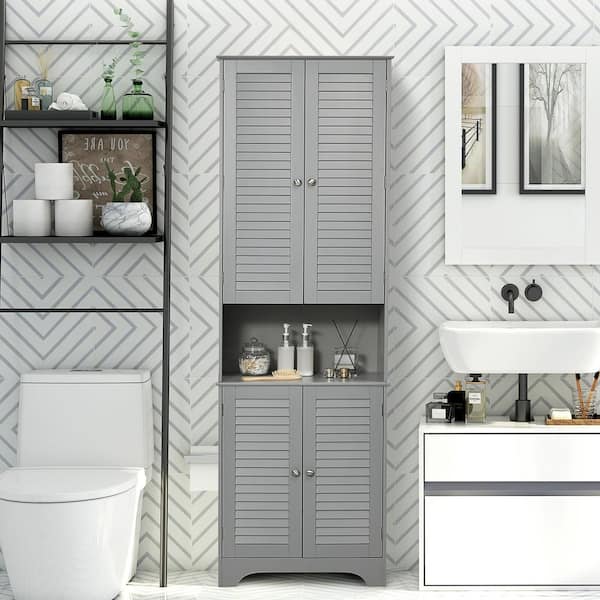 23.5 in. W x 11.75 in. D x 71.75 in. H Gray Linen Cabinet with Doors, Shelf, 2 Cabinets and Countertop