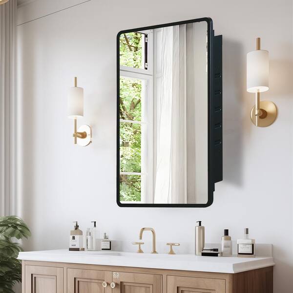 24 in. W x 30 in. H Rectangular Framed Recessed or Surface Mount Medicine Cabinet with Mirror in Black