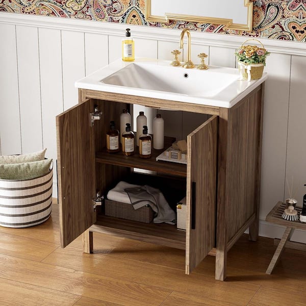 30 in. W Freestanding Bath Vanity in Natural with White Ceramic Top, Soft Closing Door, Multi-Function Storage