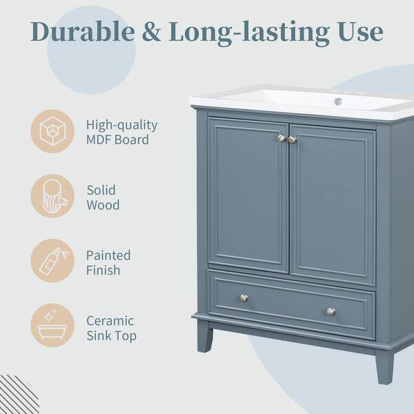 30 in. W x 18 in. D x 34.8 in. H Bath Vanity Cabinet without Top with Doors and Drawer in Blue