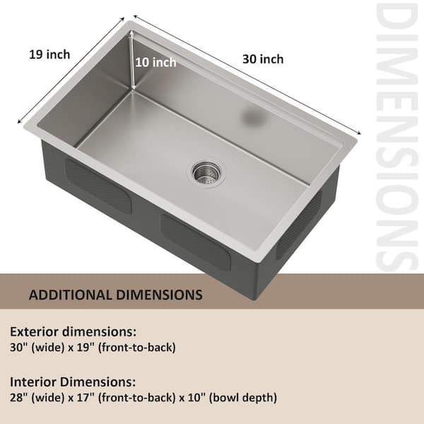 30 in. x 19 in. Undermount Stainless Steel Kitchen Sink with 16 Gauge Single Bowl in Silver