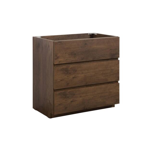 35.5 in. W x 17.9 in. D x 32.3 in. H Bath Vanity Cabinet without Top with 3-Drawers in Brown