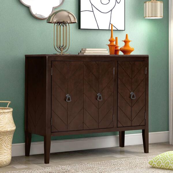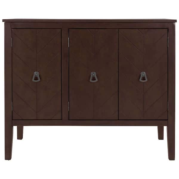 37 in. Brown Kitchen Pantry Cabinet with 3 Retro Metal Handles and 4 Pinewood Legs