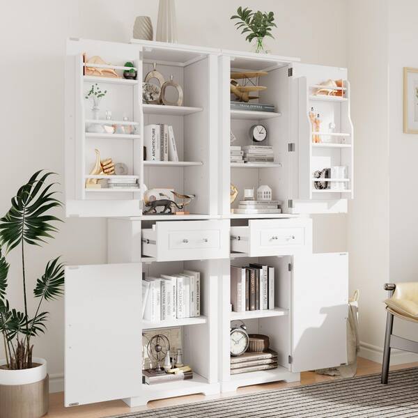 40 in. W x 15.8 in. D x 72.1 in. H White Linen Cabinet with Four Different Size Doors and Adjustable Shelf(2-Piece)